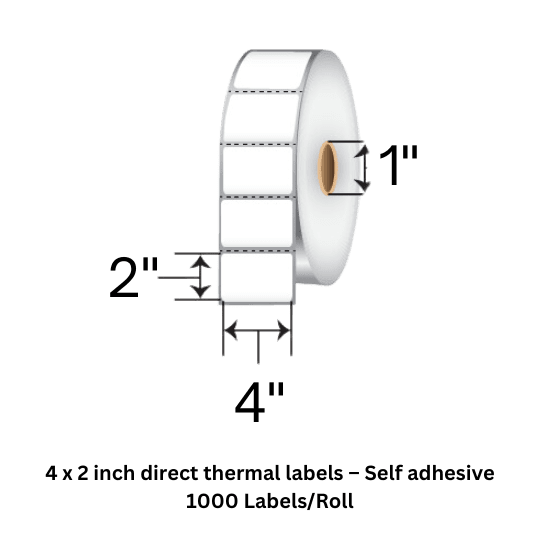 These 4×2 inch direct thermal labels are made from premium materials to provide crisp and durable printing without the need for ribbons. Each label measures 100 x 50 mm (4 inches x 2 inch), making them perfect for a variety of labeling tasks. The roll contains 1000 labels with a 1-inch core size, ensuring compatibility with most Direct Thermal label printers.
